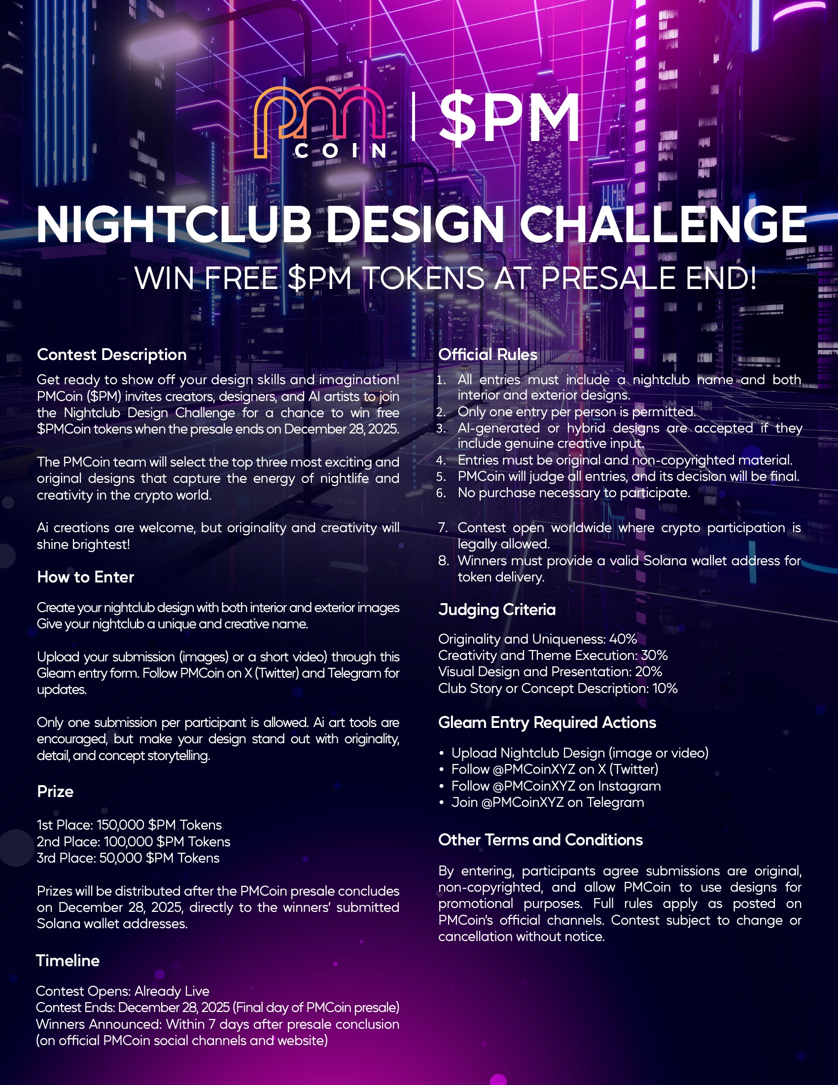 With PMCoin ($PM), users can: Earn rewards for attending and supporting venues and live events. Unlock exclusive perks like early-access tickets, VIP upgrades, and meet-and-greet opportunities. Support nightlife businesses with a digital payment system tailored to their industry. Trade and share $PM with others who share the passion for entertainment and nightlife. By bridging blockchain with real-world nightlife, $PM is more than a digital coin—it’s the ultimate currency of entertainment, designed to light up your nights.